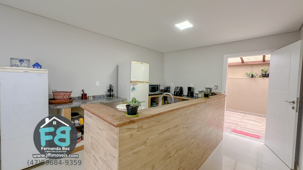 O sobrado possui no andar inferior, sala de estar, sala de jantar em ambiente integrado à cozinha, lavabo, escritório, ampla área de festa com churrasqueira e lavanderia.